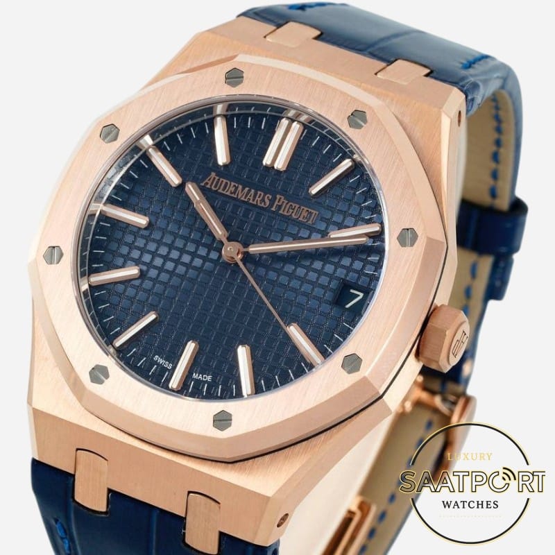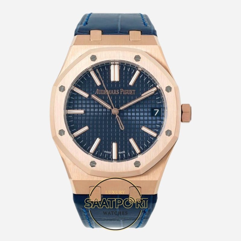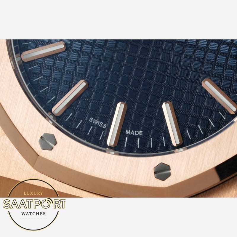 Audemars Piguet 15510OR Rose Kasa 41mm Mavi Deri Kayış DDF Factory 4302 Super Clone ETA