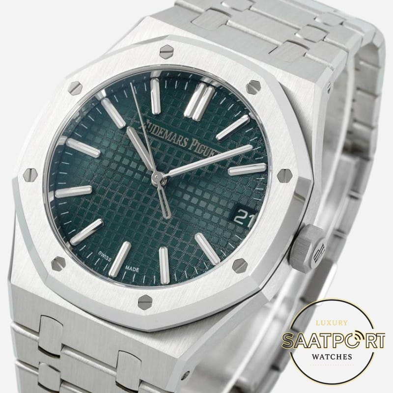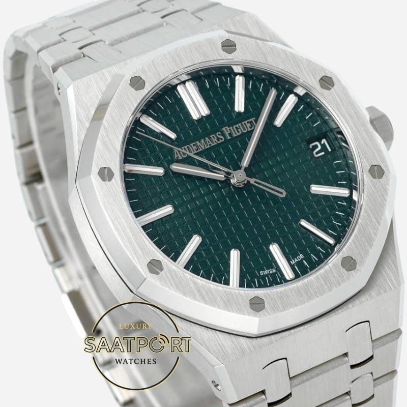 Audemars Piguet 15510ST.OO.1320ST.09, tasarım dili ve dayanıklı yapısıyla modern lüks saat beklentisini karşılayan detaylarla donatılmıştır. Yeşil kadran ve kaliteli çelik birleşimi, ürünü farklı ve estetik bir konuma taşımaktadır.