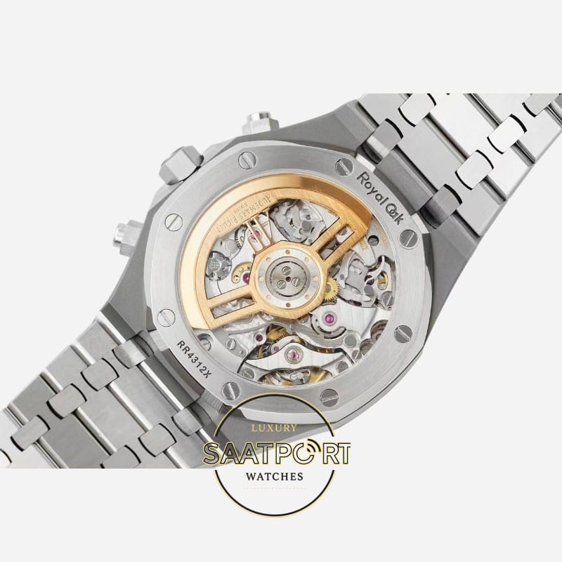 Tüm bu detaylar, hem teknik bir görünüm hem de kusursuz bir simetri oluşturur. Paslanmaz çelik köşegen bezel, Royal Oak karakterini korurken dayanıklılığı ve sportif şıklığı güçlendirir.