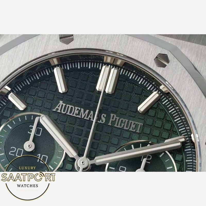 Saat dünyasında lüksün ve mühendisliğin kesişim noktası olarak bilinen Audemars Piguet Royal Oak Chronograph 26240ST Green Dial, özgün tarzı ve güçlü yapısıyla dikkat çeken bir modeldir. DDF Factory üretimi olan bu özel versiyon, yeşilin modern enerjisini Royal Oak’un ikonik çizgileriyle birleştiriyor.