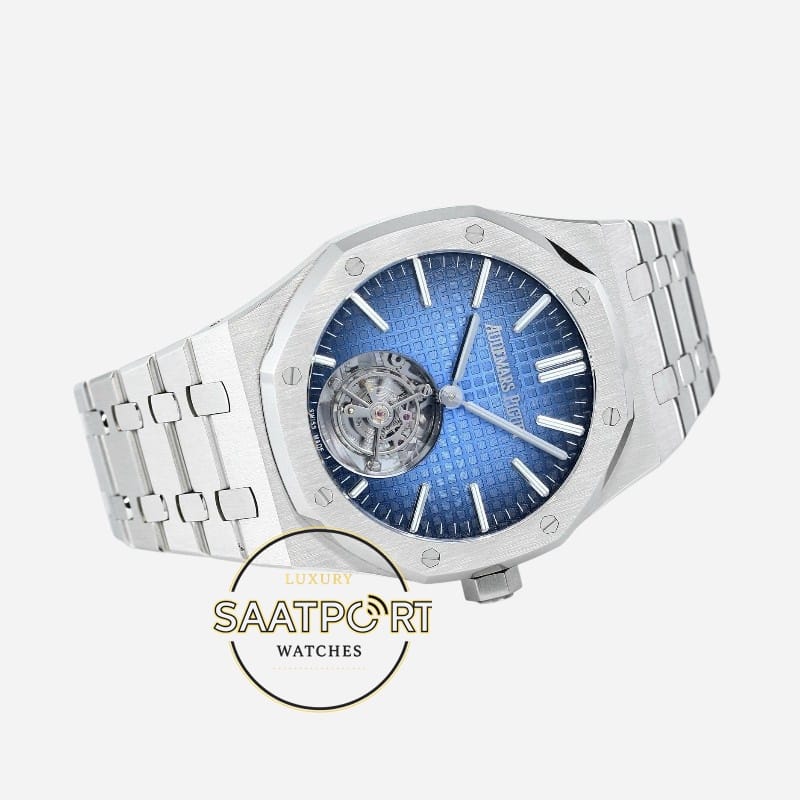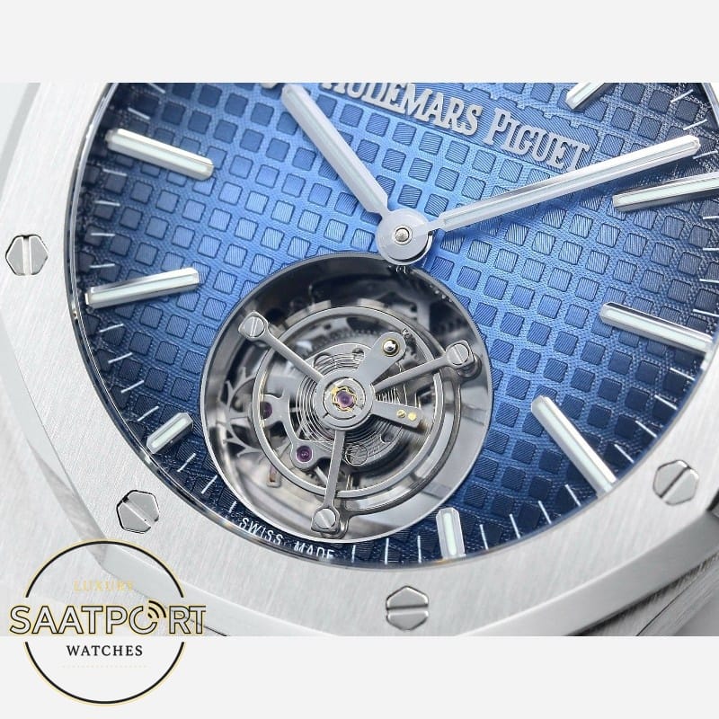 Audemars Piguet Royal Oak 26730ST.OO.1320ST.02, 41mm çelik kasa, mavi kadran ve 2950 Tourbillon Super Clone ETA mekanizmasıyla sportif lüksü zamansız bir tasarımda buluşturur. Audemars Piguet, saat dünyasında cesur tasarımları ve yüksek işçilik kalitesiyle öne çıkan prestijli markalardan biridir. Markanın efsaneleşmiş koleksiyonu olan Royal Oak, çelik kasayı lüks bir kimliğe dönüştüren çizgisiyle dikkat çeker. 26730ST.OO.1320ST.02 referans numaralı bu model, mavi kadranı ve güçlü çelik yapısıyla hem modern hem de klasik bir duruş sergiler.