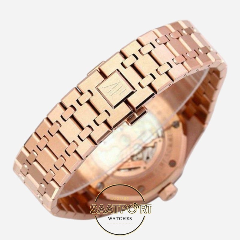 Sekizgen bezel ve vidalı tasarım, Royal Oak’un karakteristik detaylarını korurken, yüksek kalite işçilikle birleşir.