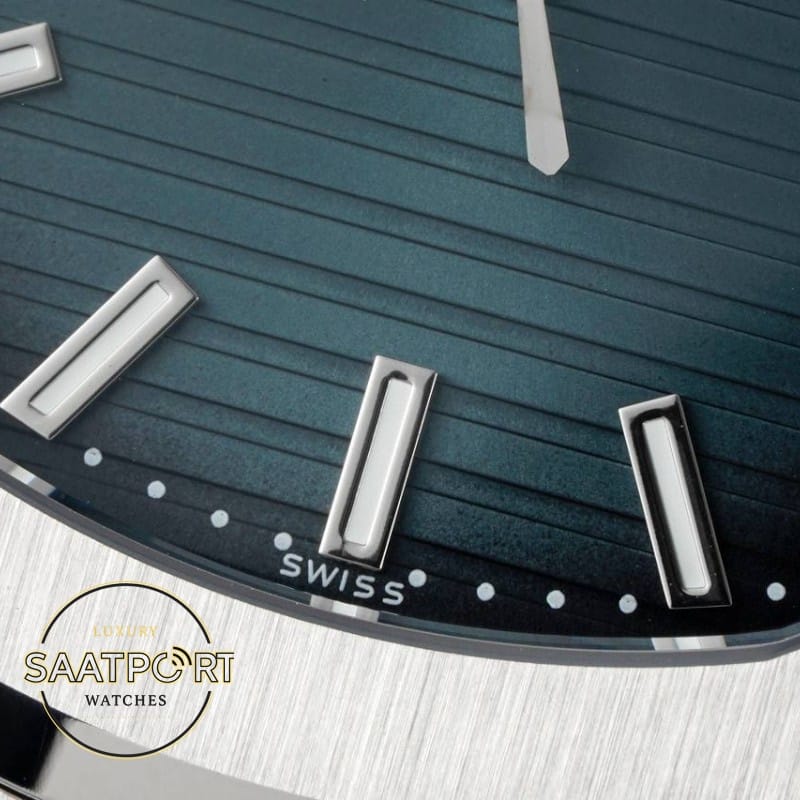 5711/1A-010 modelinin en dikkat çekici özelliği, markanın klasikleşmiş mavi kadranıdır. Işığa göre ton değiştiren bu kadran, derin deniz mavisini andıran bir görünüme sahiptir. Yatay çizgili kadran yapısı, Nautilus’un sportif karakterini ön plana çıkarırken zarif indeks detaylarıyla da sofistike bir görünüm sunar.