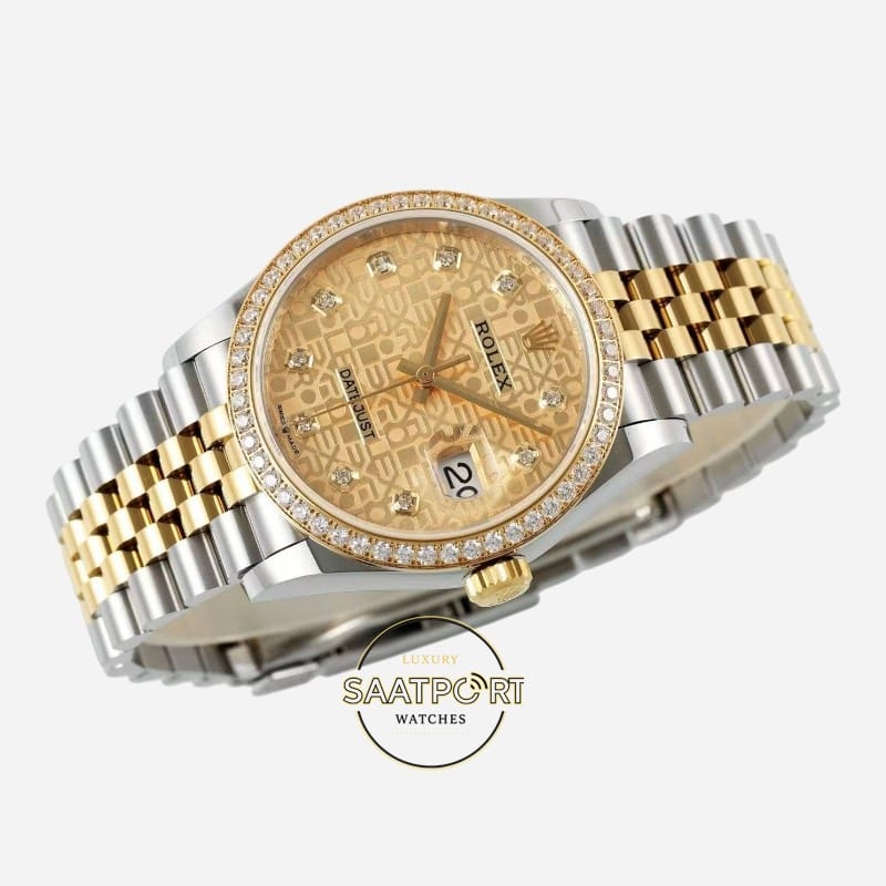Rolex Datejust 36mm Champagne Jubilee Motif 126283RBR Super Clone ETA – Zarafet ve Işıltının Buluşması