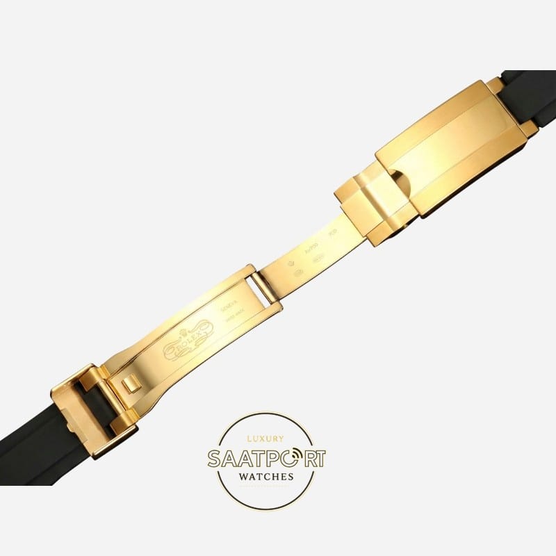 Oysterflex kauçuk bilezik, iç yapısındaki metal destek sayesinde formunu korur ve bilekte dengeli bir tutuş sağlar. Spor kullanıma uygun esnek yapı, şık kombinlerde ise rafine bir görünüm sunar. Sarı altın tonlu toka, kasa ile estetik bütünlük oluşturur.