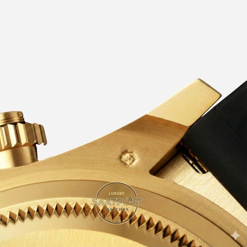 Saat kasası, Everose Gold tonunda üretilmiş olup orijinal ölçülerle birebir uyumludur. 40 mm kasa çapı ve ideal kalınlık, bilekte dengeli bir duruş sağlar. Siyah seramik tachymeter bezel, çizilmeye karşı yüksek direnç sunarken Daytona serisinin karakteristik sportif kimliğini korur.