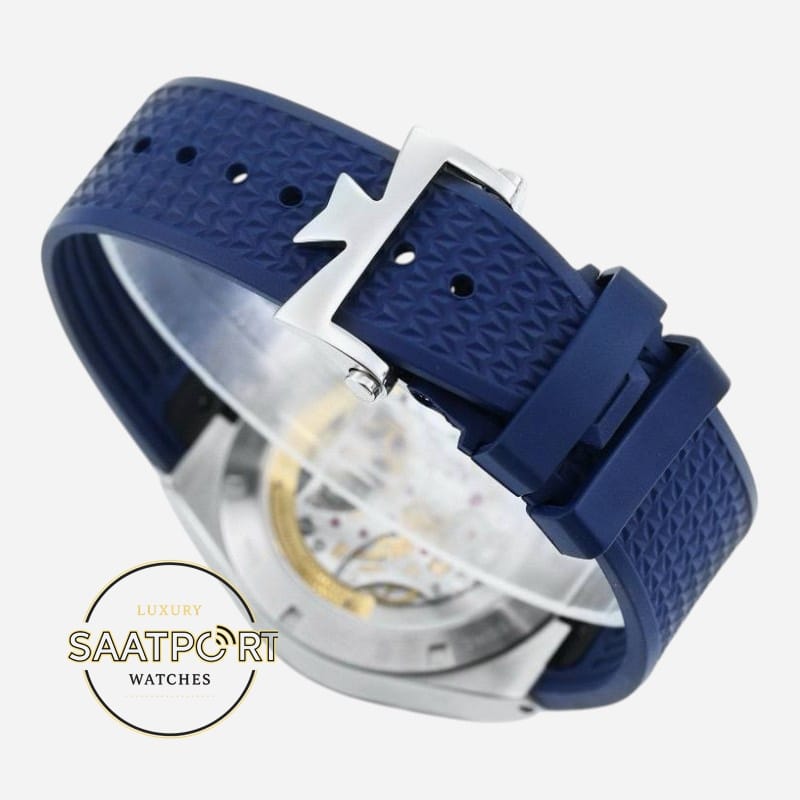 Saatin en dikkat çeken detaylarından biri ise mavi kauçuk kordonudur. Spor ve lüks tasarımın dengeli birleşimini sunan bu kordon, hem dayanıklı hem de oldukça konforludur.